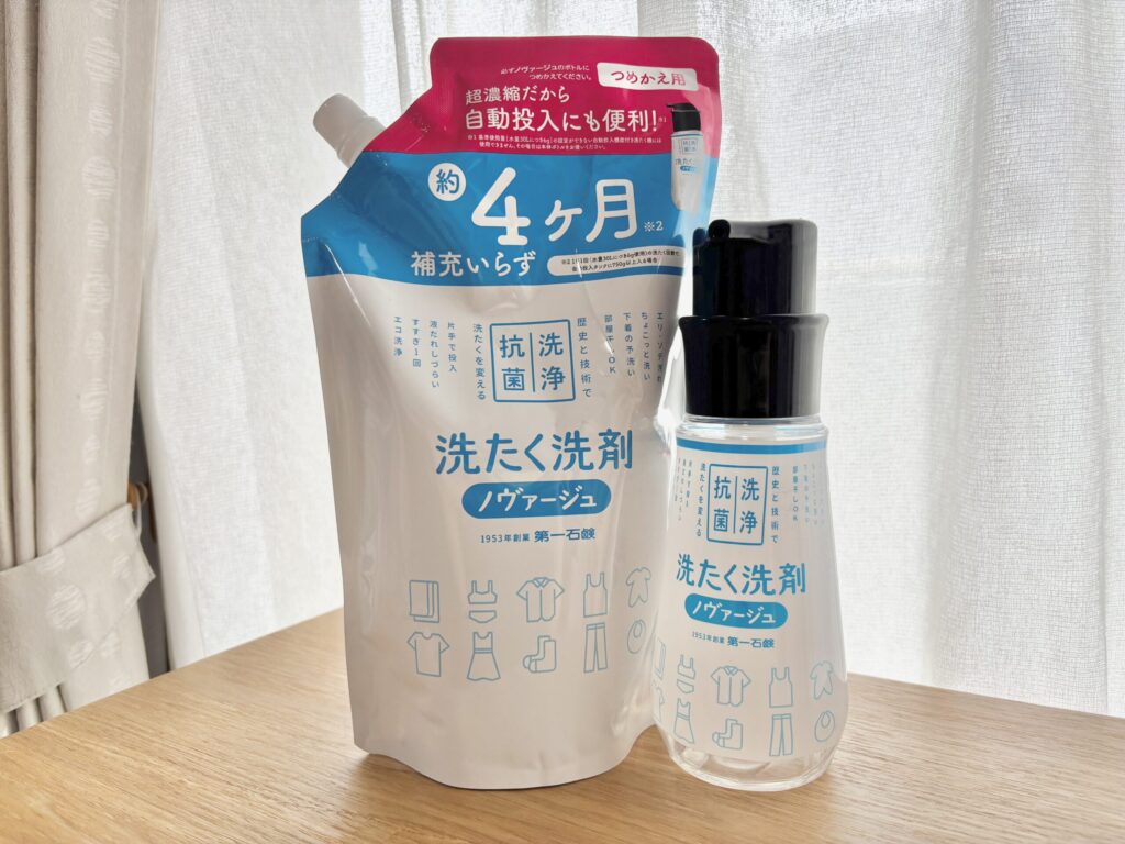 そんな悩みを解決してくれそうだったので、ノヴァージュの超濃縮液体洗たく洗剤を使ってみました。