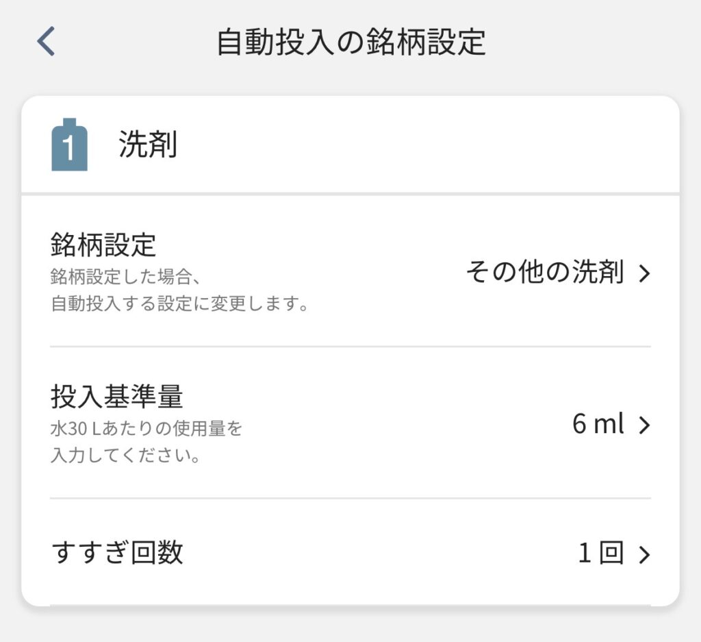 この機能は、【洗剤をタンクに入れておく→洗濯機が自動で適量を投入】という仕組みですが、